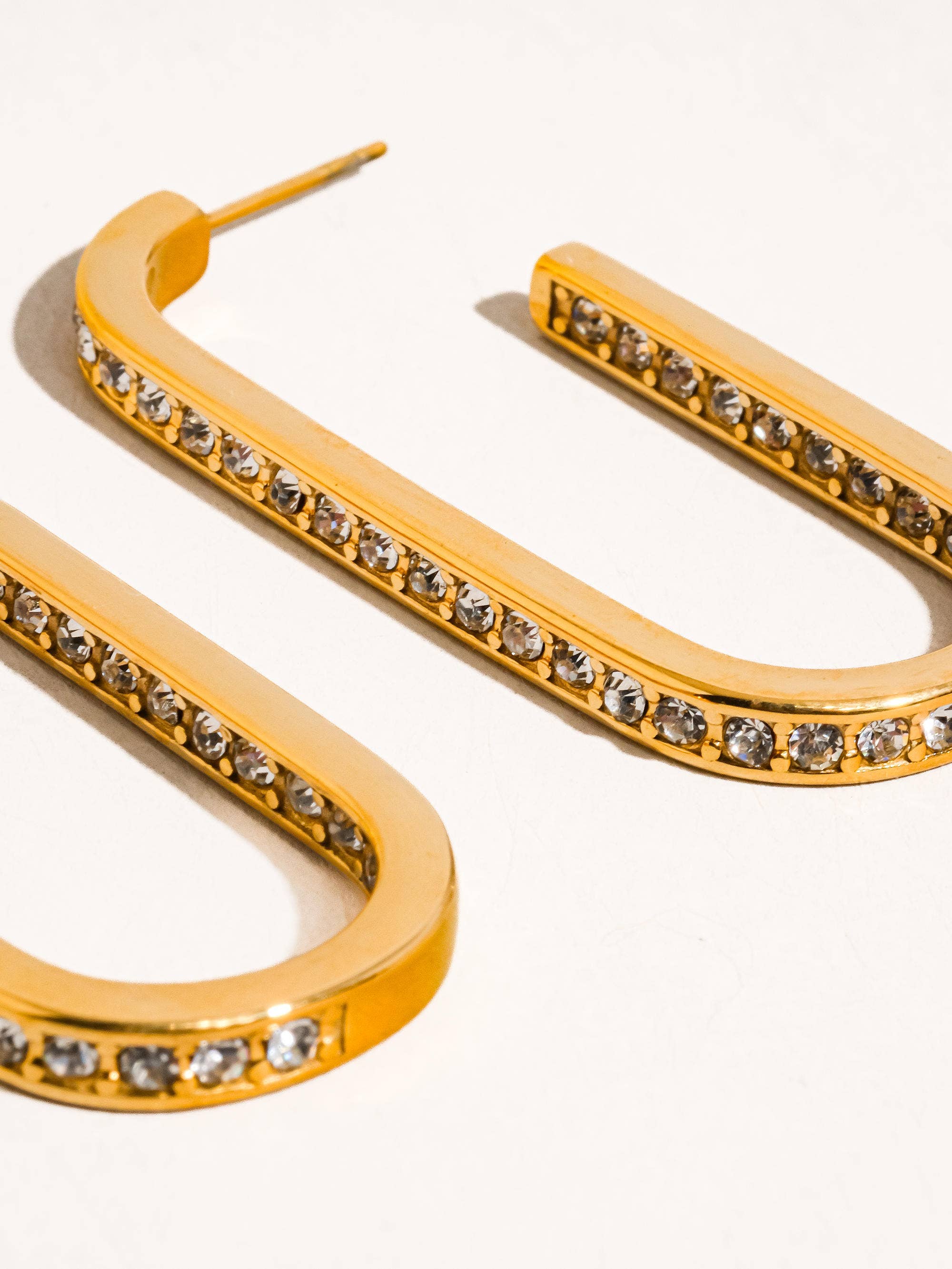 18K Gold Non-Tarnish U Hoop CZ Earring