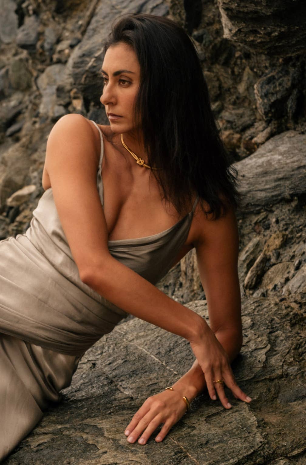 Bold meets timeless with our Margot Necklace: double-layered snake chain featuring a striking knot centerpiece for a touch of effortless edge 18K Gold-Plated over stainless steel with PVD coating for tarnish-resistant wear 15” L with 2” extender
