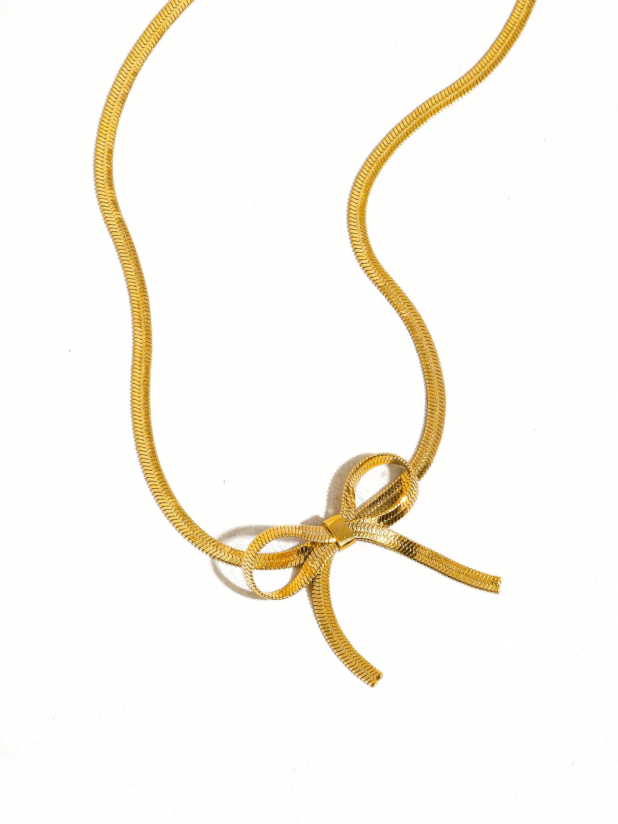 Marie 18K Gold Non-Tarnish Flat Snake Bow Choker