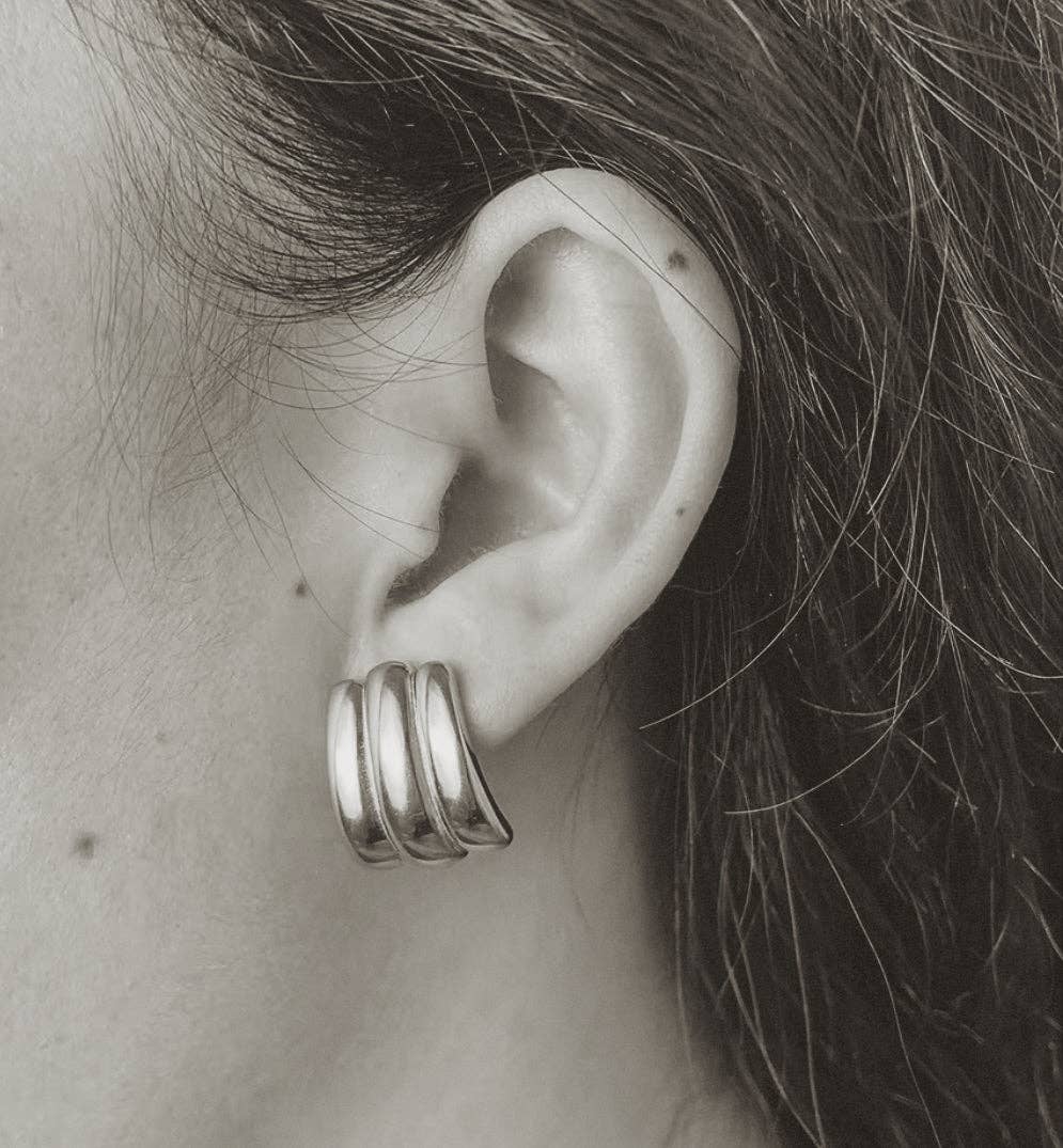 Our Simone Studs are a bold, gold statement piece, featuring a timeless croissant shape that effortlessly elevates any outfit