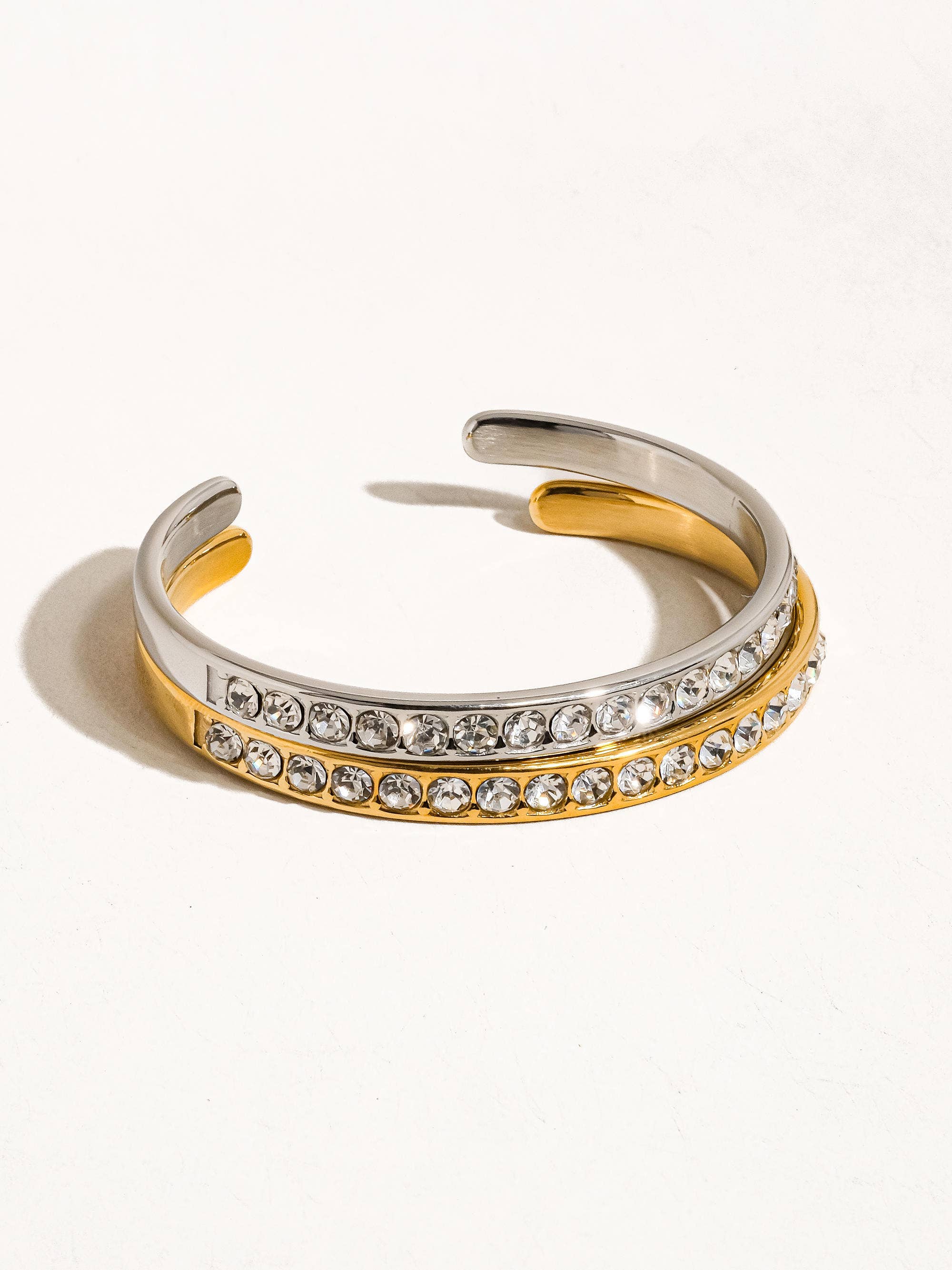 Troy 18K Gold Non-Tarnish Rhinestone Bangle