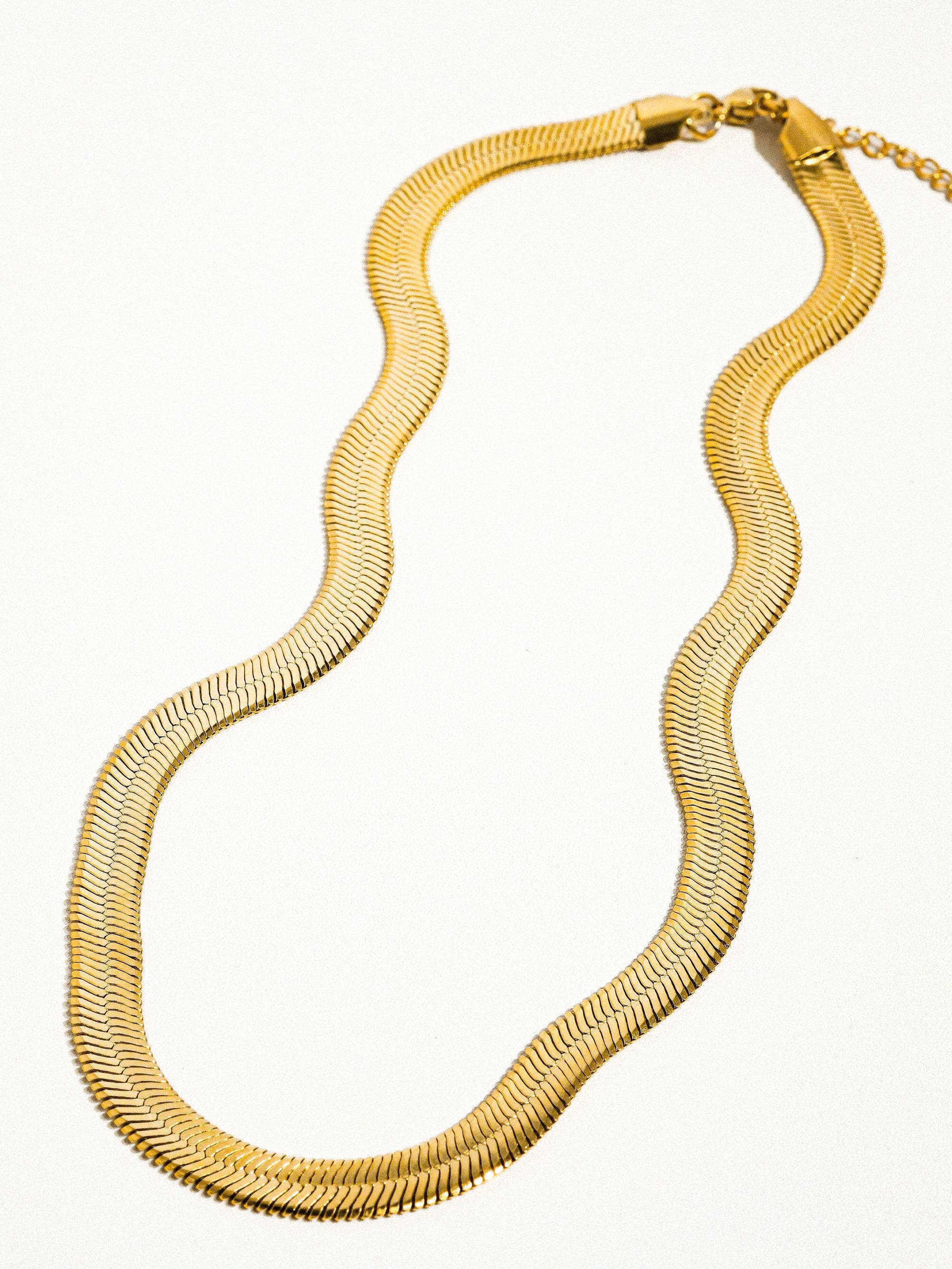 Juliana 18K Gold Non-Tarnish Flat Bold Snake Chain Necklace
