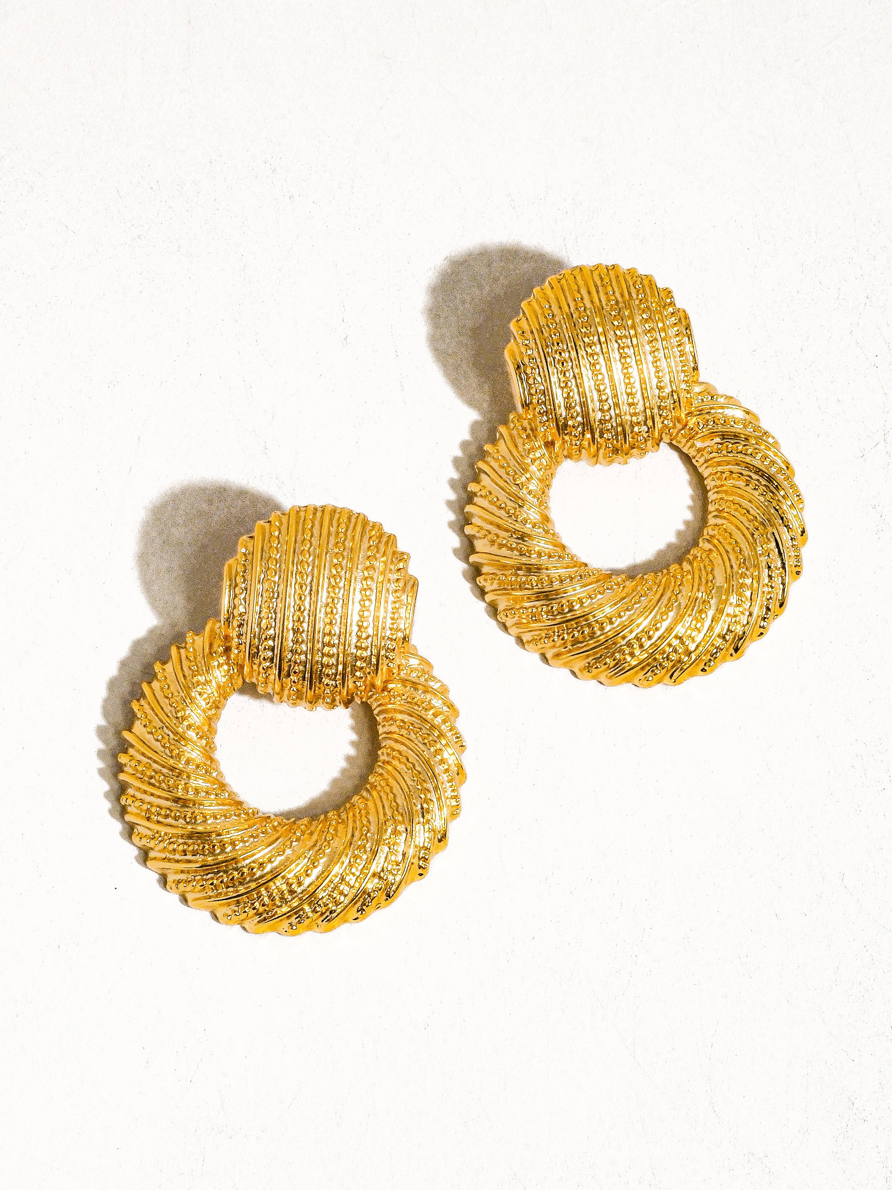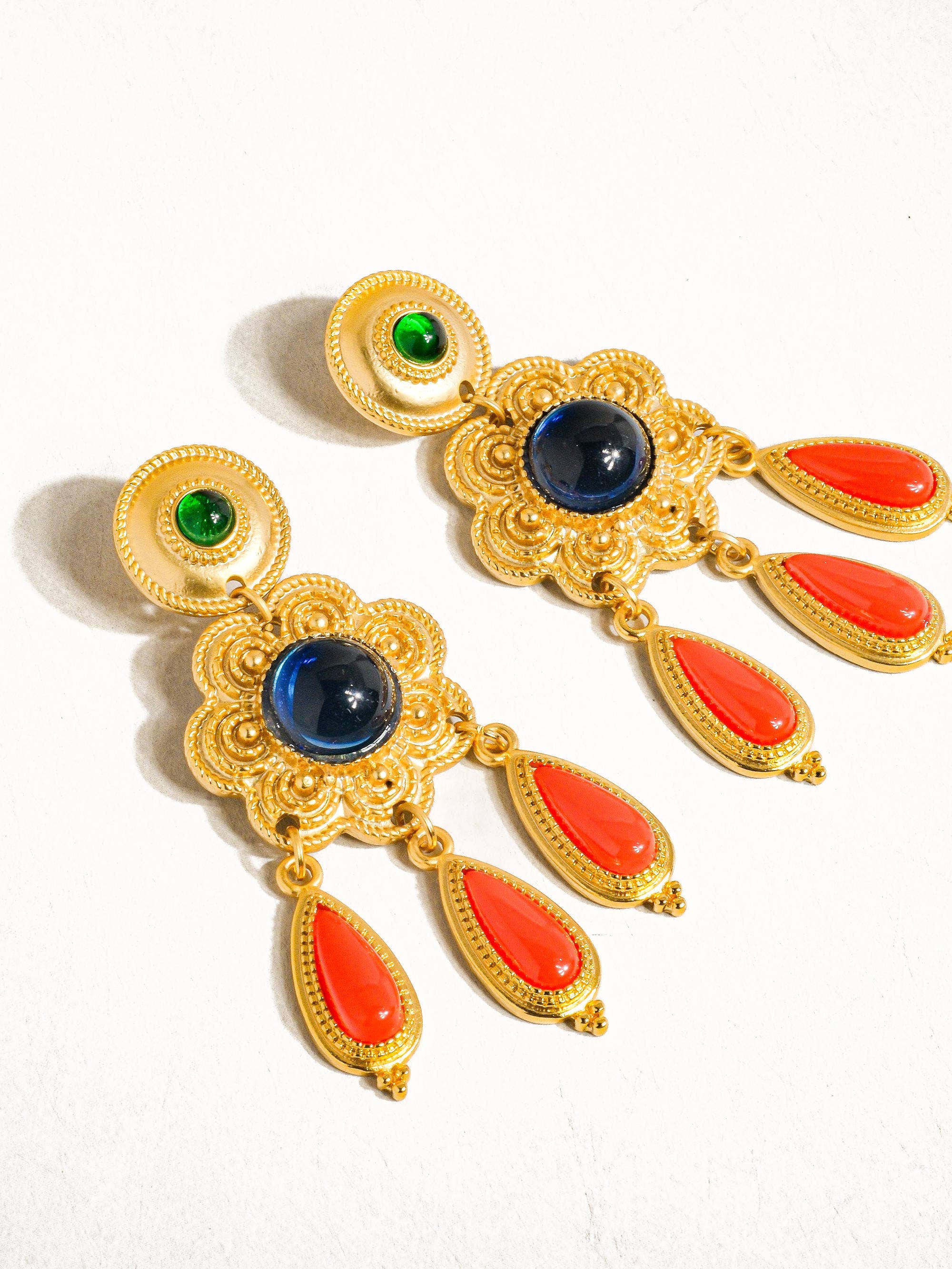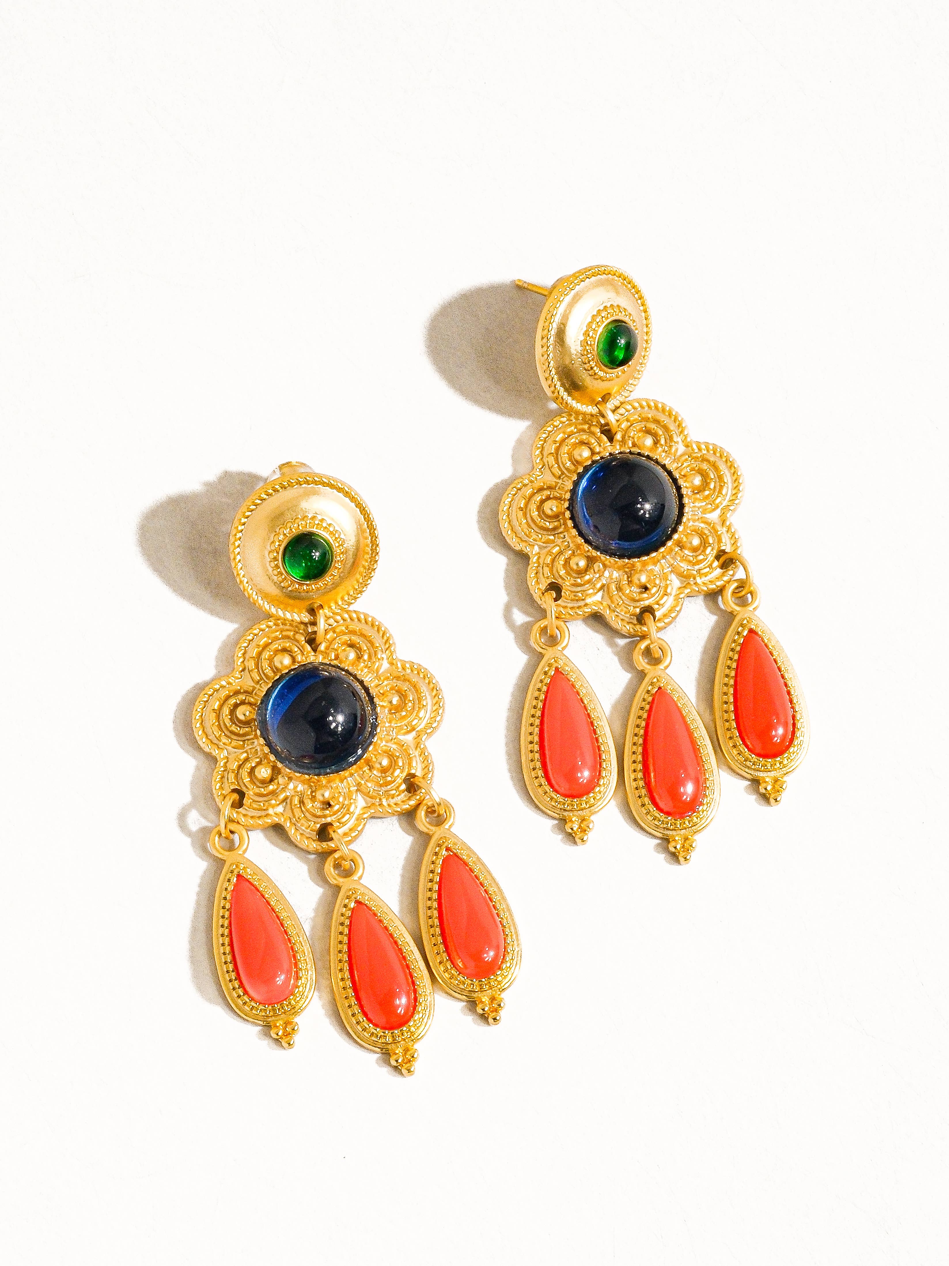 Aperol 18K Gold Vintage Triple-Layered Flower Dangle Earring