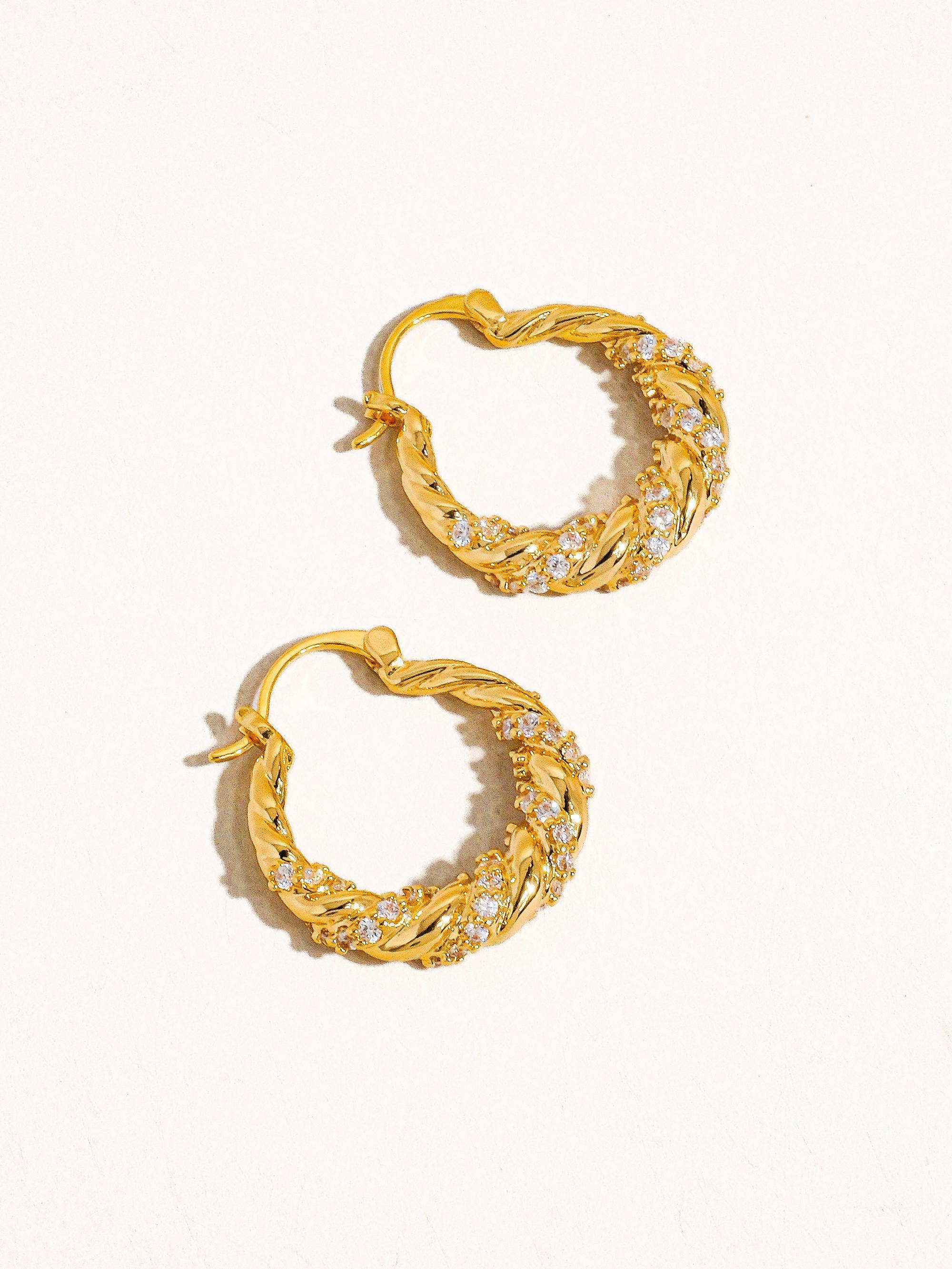 Jasper 18K Gold Rhinestone Twisted Hoop Earring
