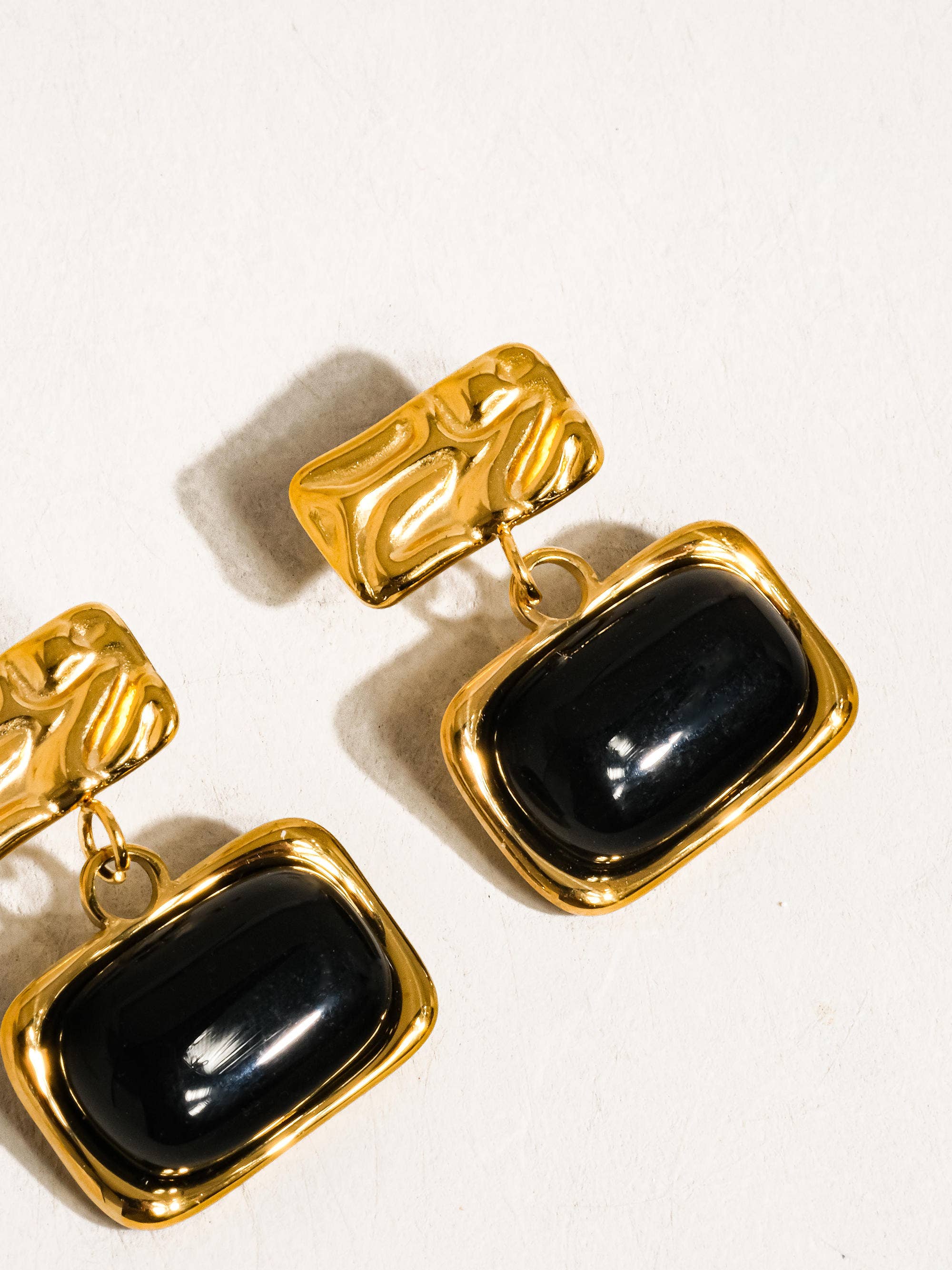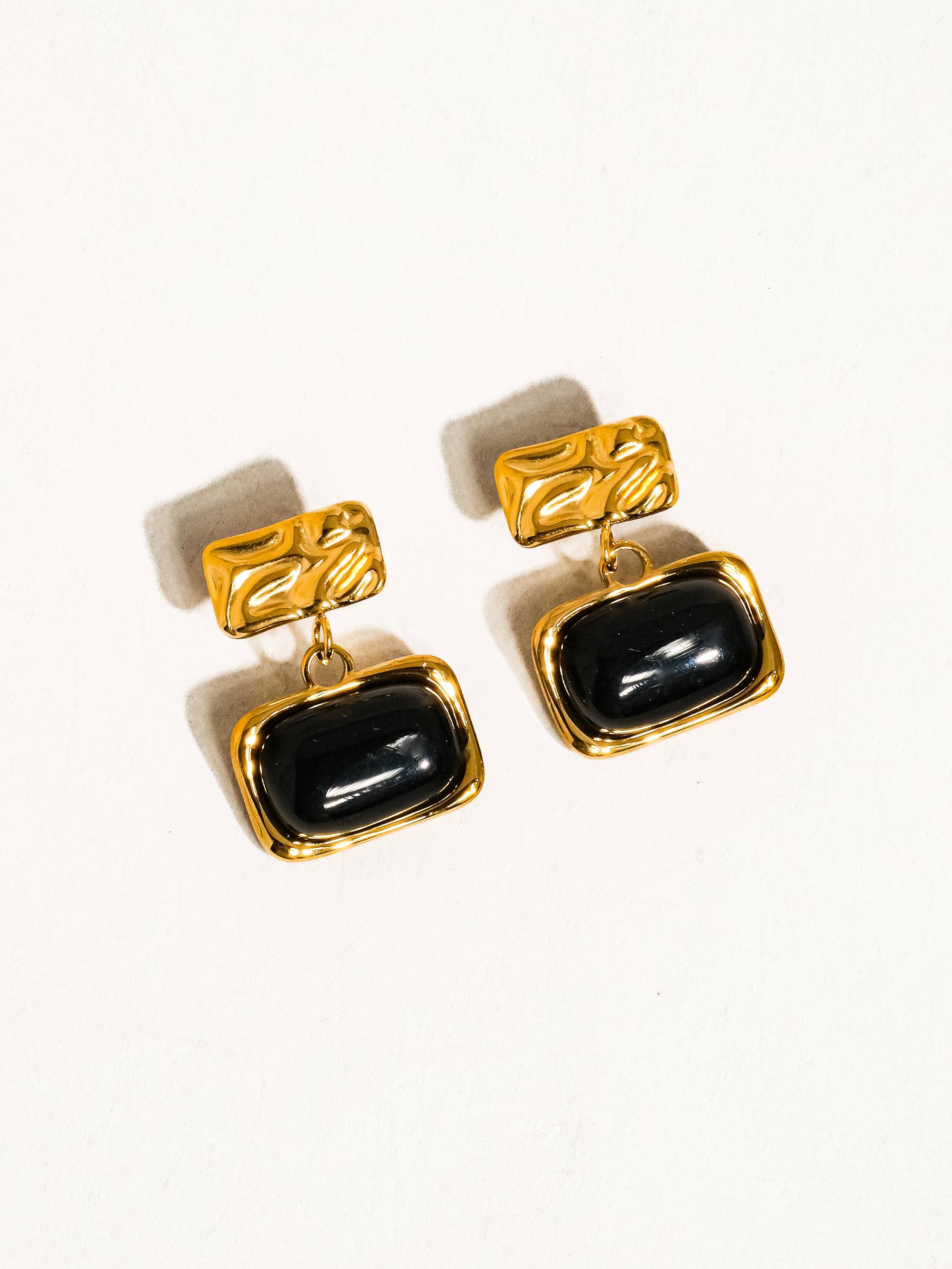 Cuvée 18K Gold Non-Tarnish Black Square Dangle Earring