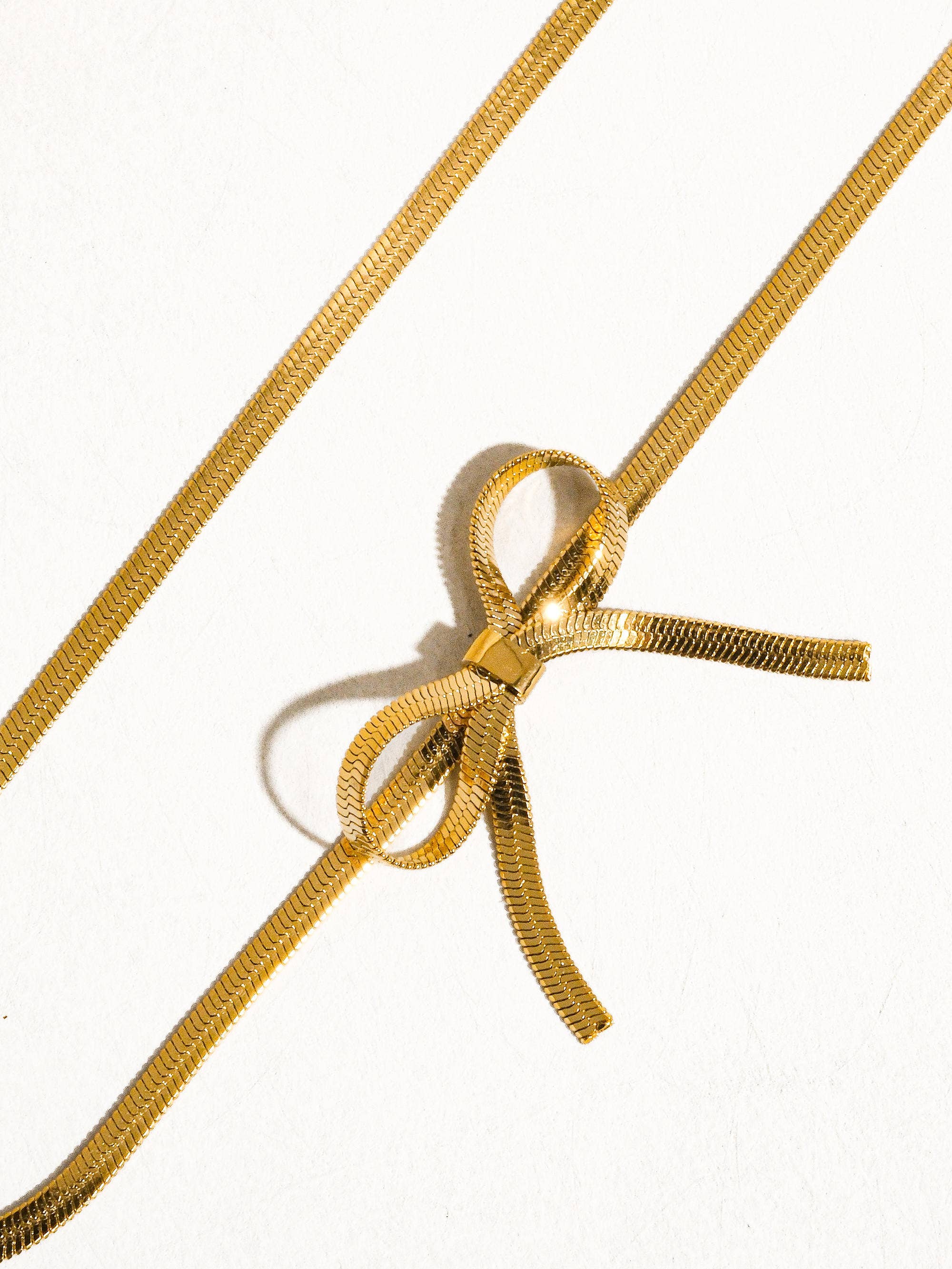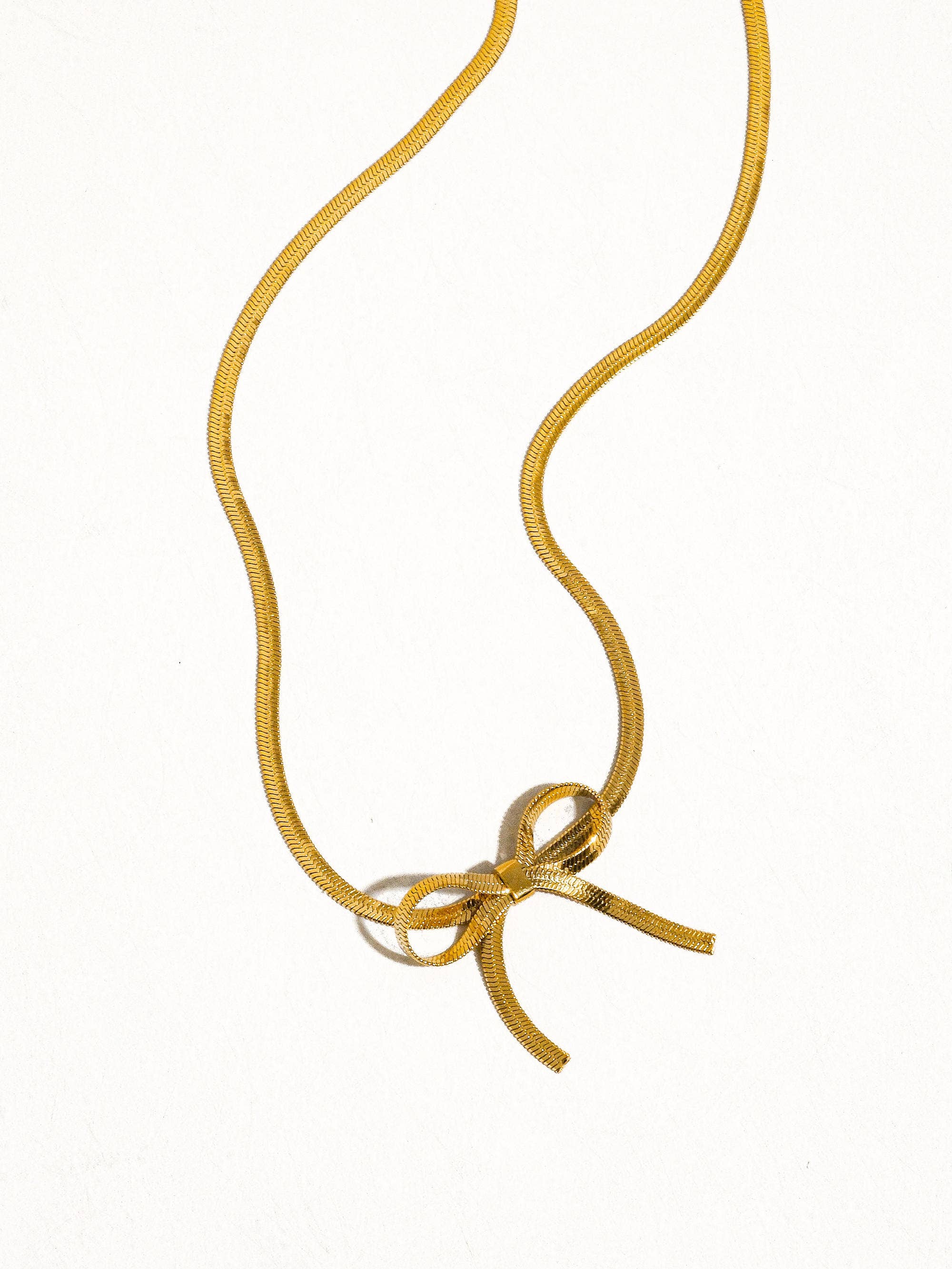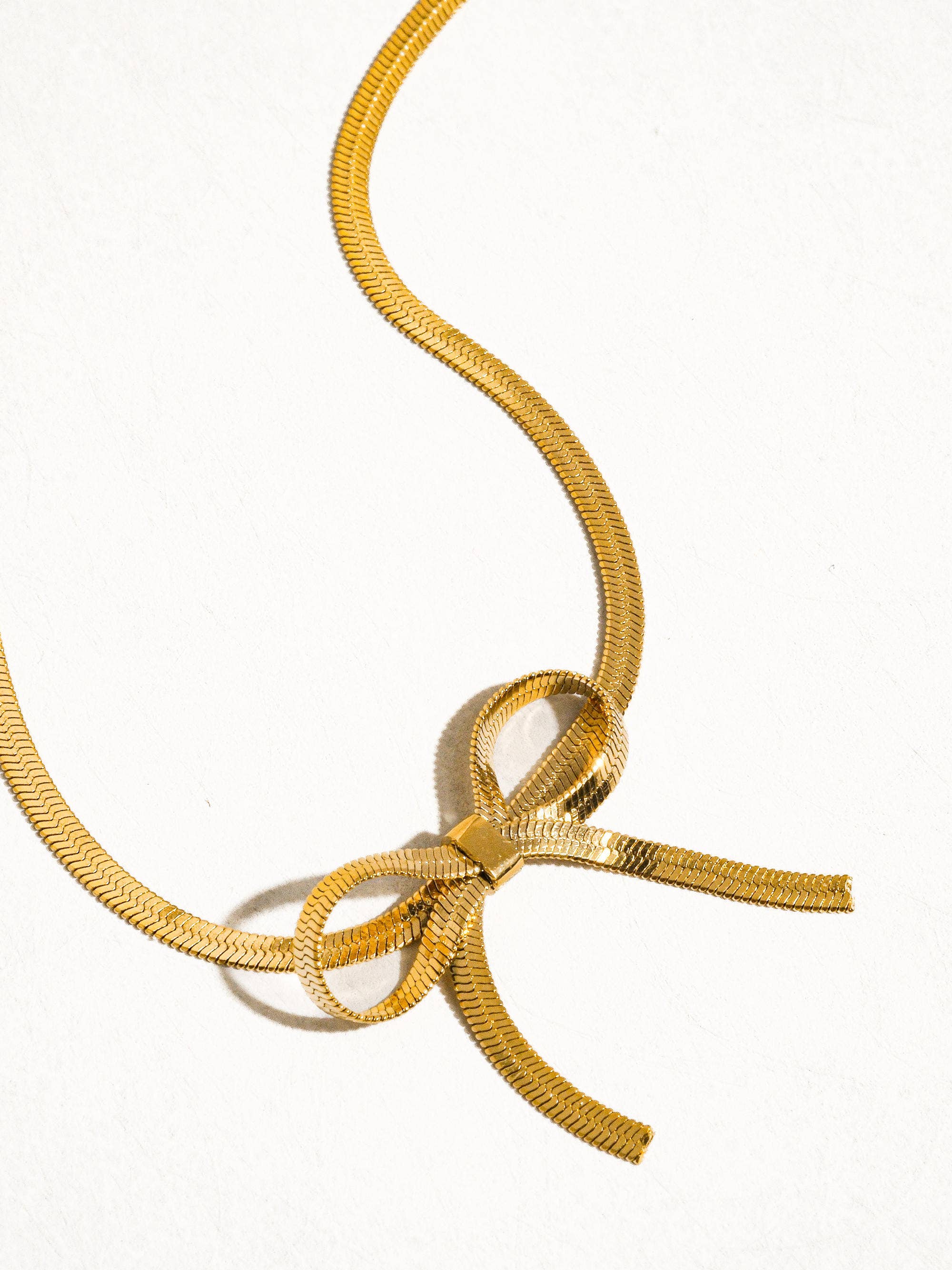 Marie 18K Gold Non-Tarnish Flat Snake Bow Choker