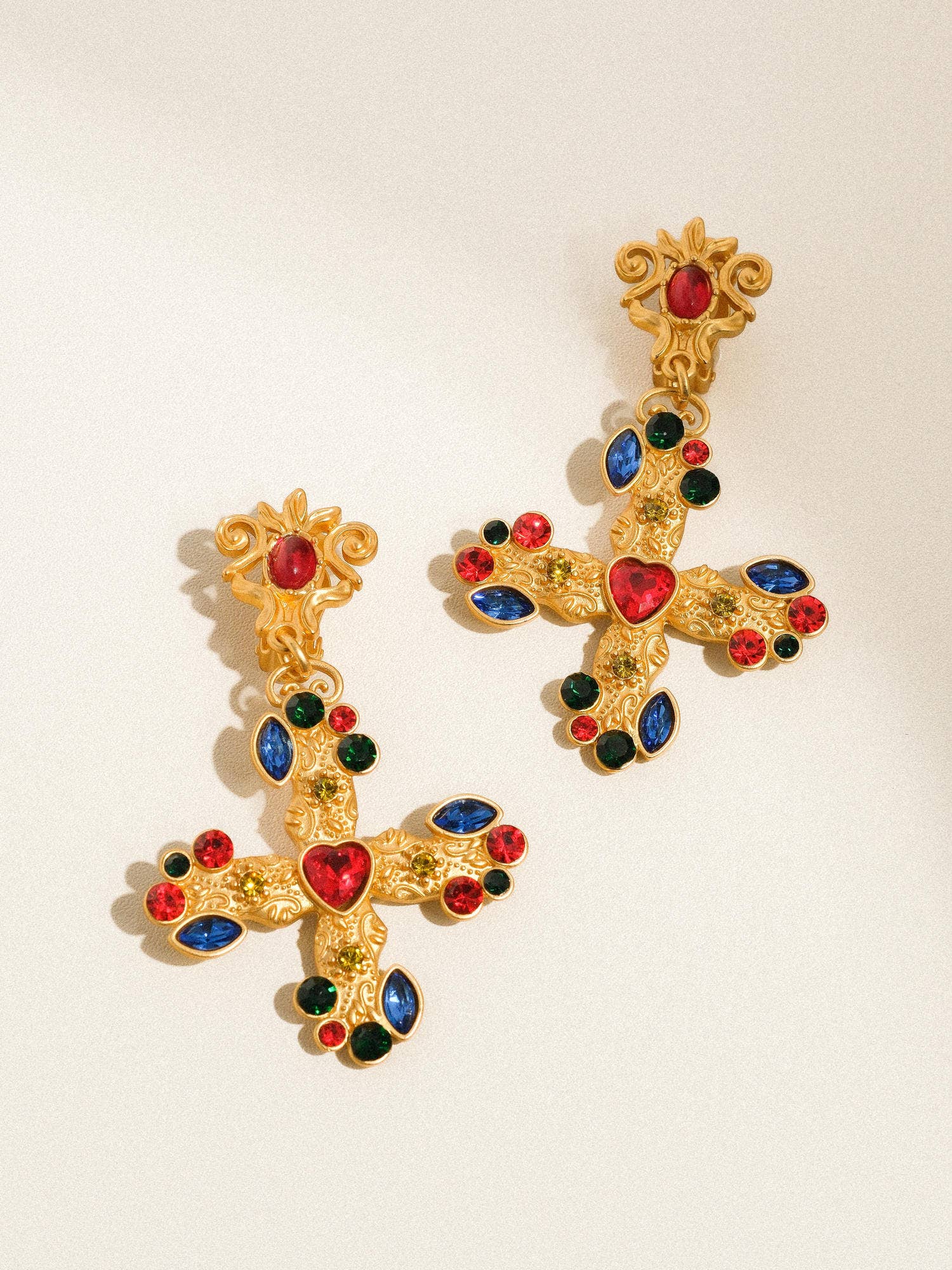 Juno 18K Matte Gold Boho Cross Ear Clip-ons