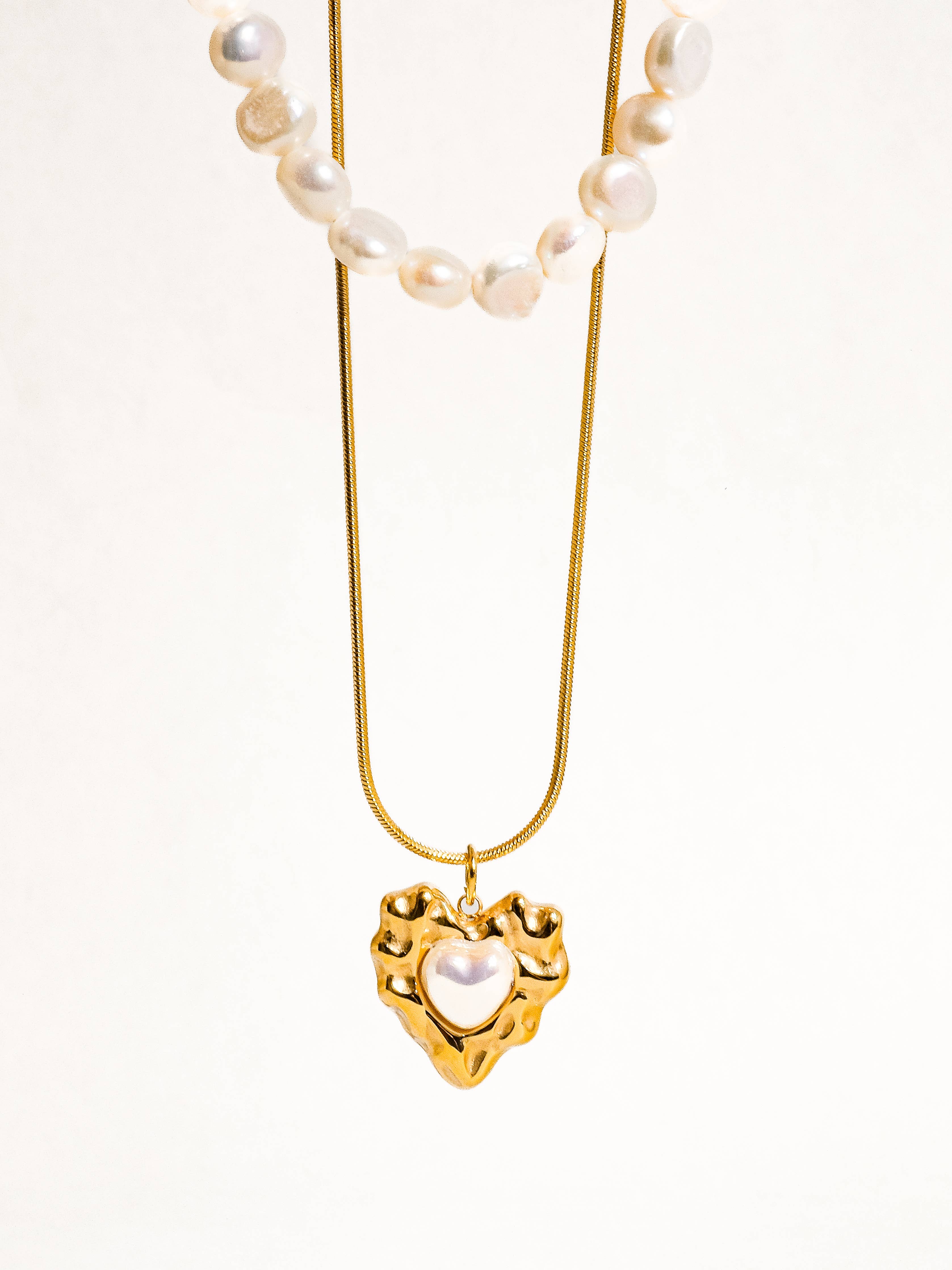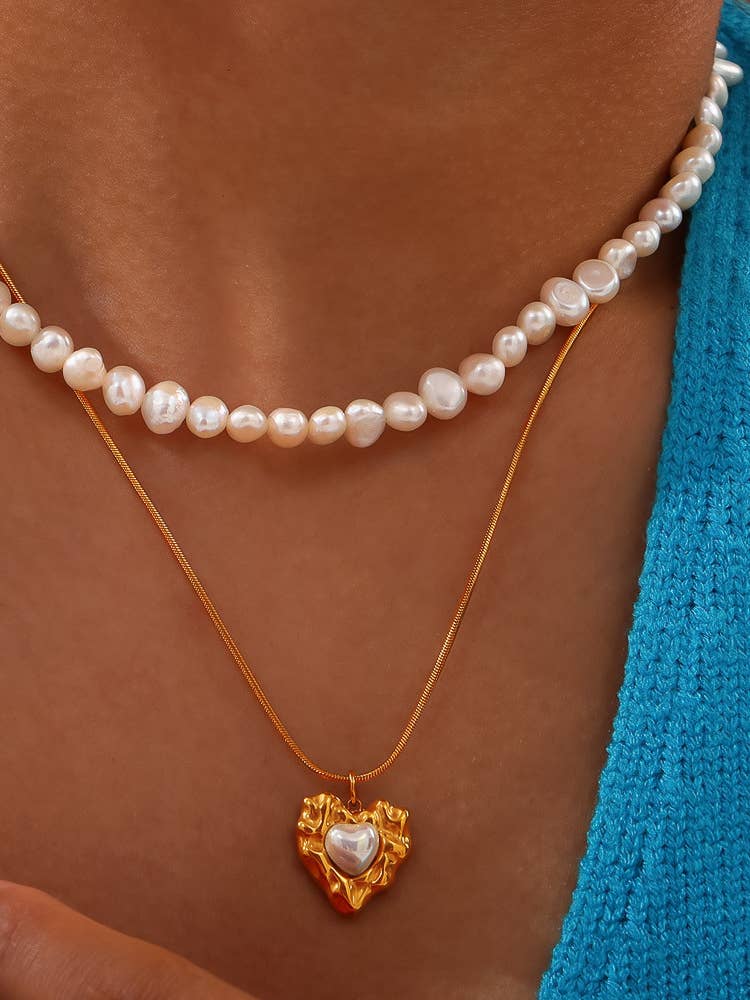 Taliana 18K Gold Non-Tarnish Layered Pearl Heart Necklace