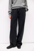 - Pleated wide leg jeans