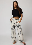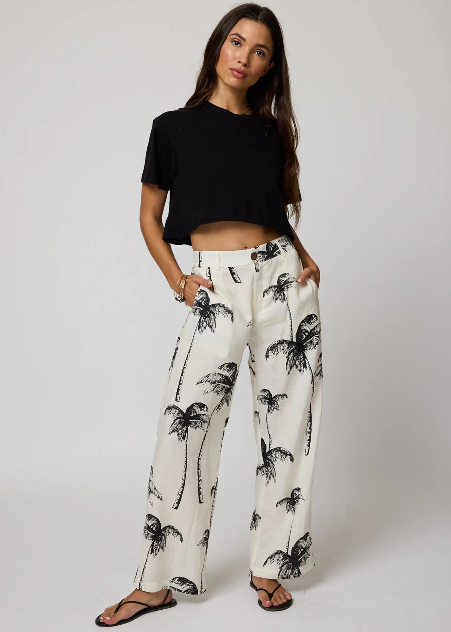These pants are so good & this print is so cool! The seriously perfect pant has a straight leg and a mid-rise that allows you to wear both high and low on the hip. If you're in between sizes, we recommend you size up to wear lower. The back waistband features an elastic panel for the best fit and comfort. Belt loops for when you want to polish off the look. Pair it with the Linen Knot front top to make it a set!