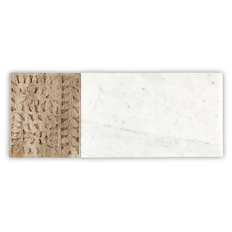 Marble and Carved Wood Serving Board