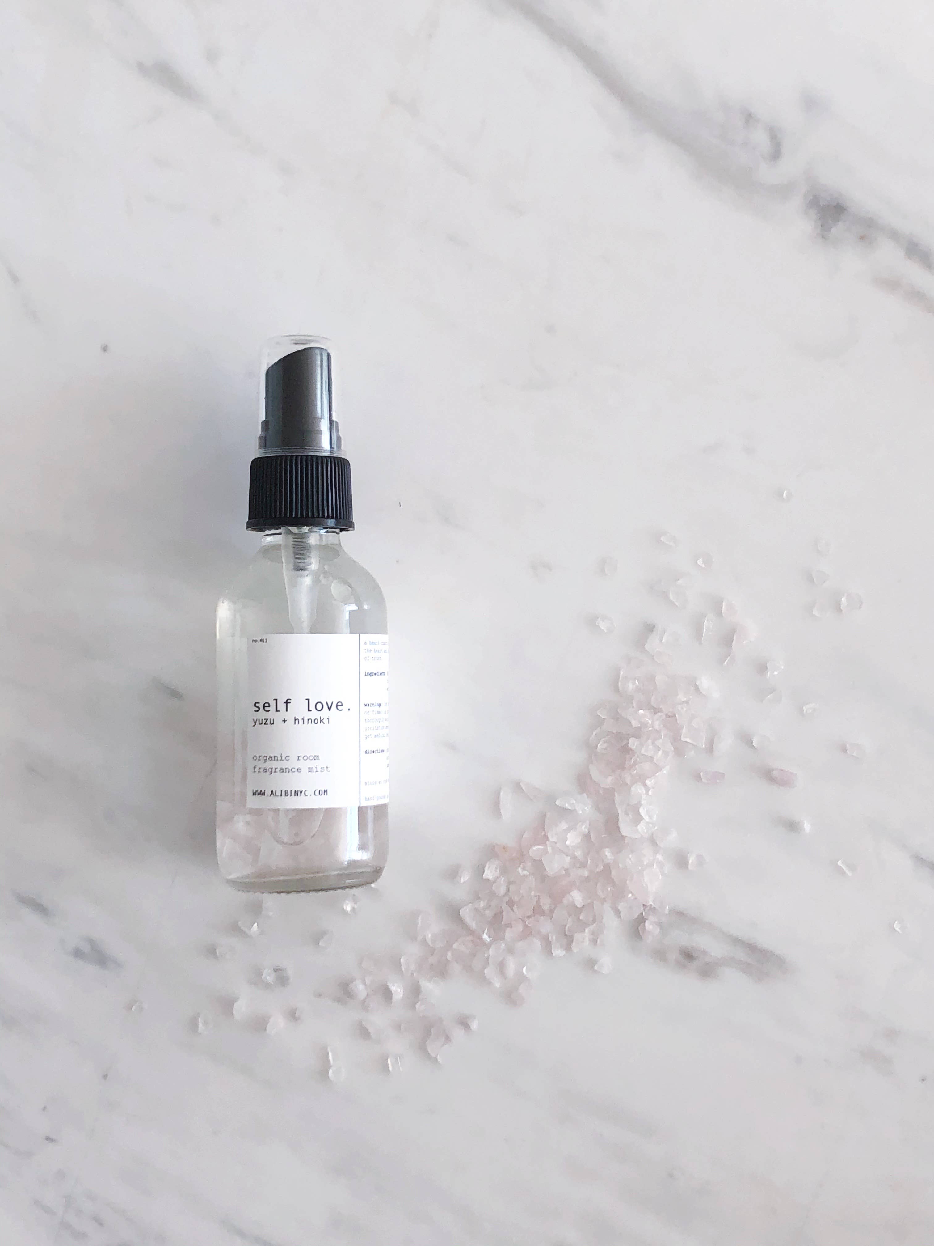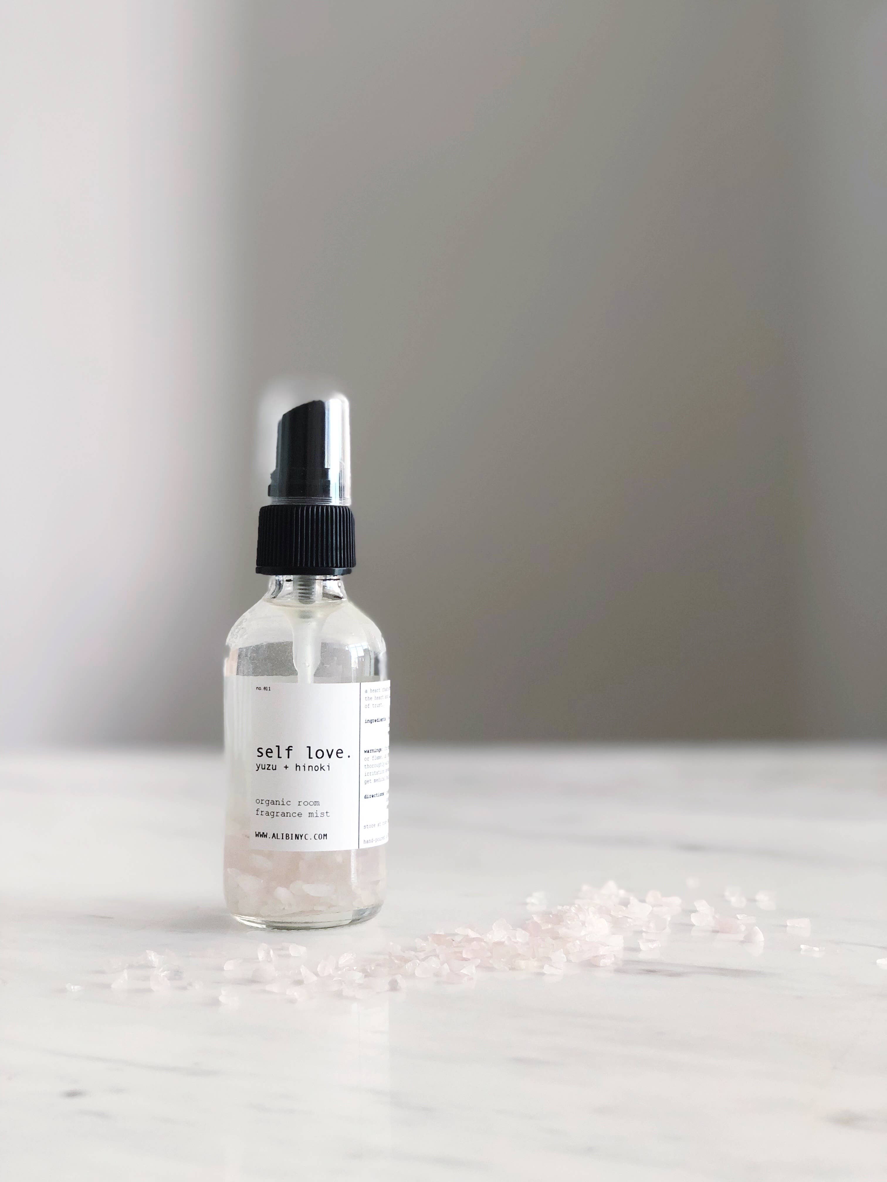 Self Love spray is made with organic witch hazel infused with Yuzu + Hinoki essential oils, combined with natural rose quartz. A heart chakra stone, rose quartz aka "the love magnet" opens the heart and allows healing of emotional wounds and restoration of trust.