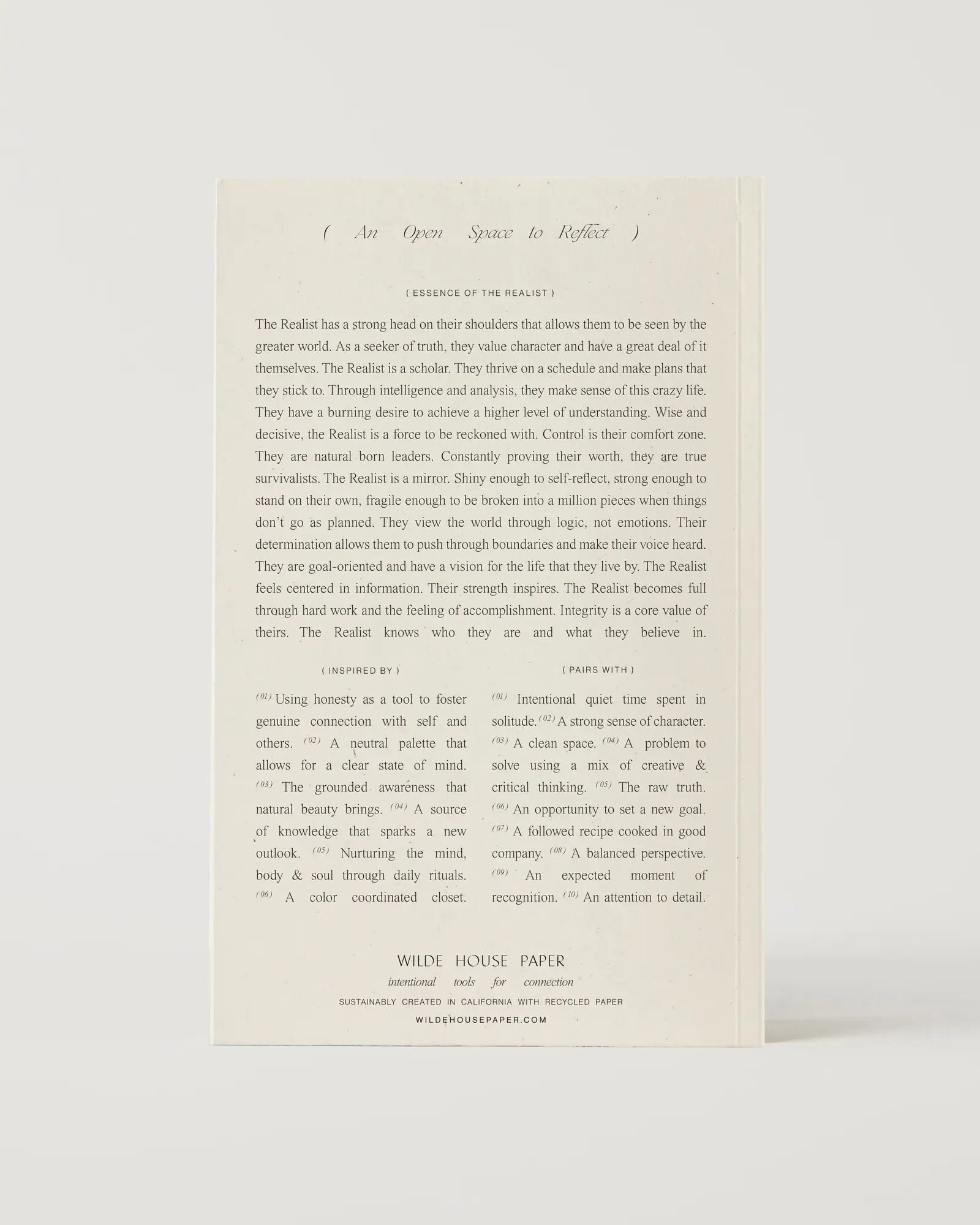Inspired by the four zodiac signs: Scorpio, Gemini, Capricorn & Virgo – the Realist Journal serves as a place to come to jot down thoughts, journal and connect back to self. With intimate poetry that connects us with the true essence of the Realist as well as inspired by notes and pair with ideas, the Realist Journal is a blank slate and an authentic home.