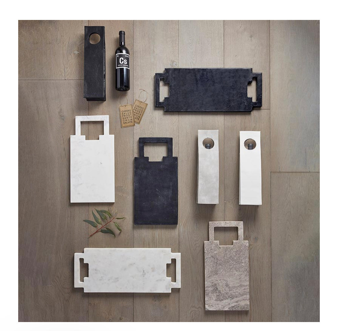 Double Handle Marble Board with Square Handle - Black