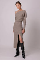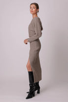 Your favorite sweater dress has arrived! The Alta Sweater Dress is practical, comfortable and sexy all in one! With its beautiful latte colored knit, you will reach for it over and over again!