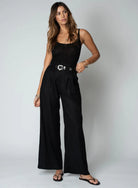 Meet the notch waist pleated front pants with hidden hook & eye closure and belt loops. Trust us, this waistband is super flattering. We love these pants paired with your favorite tee, tank or crop top!
