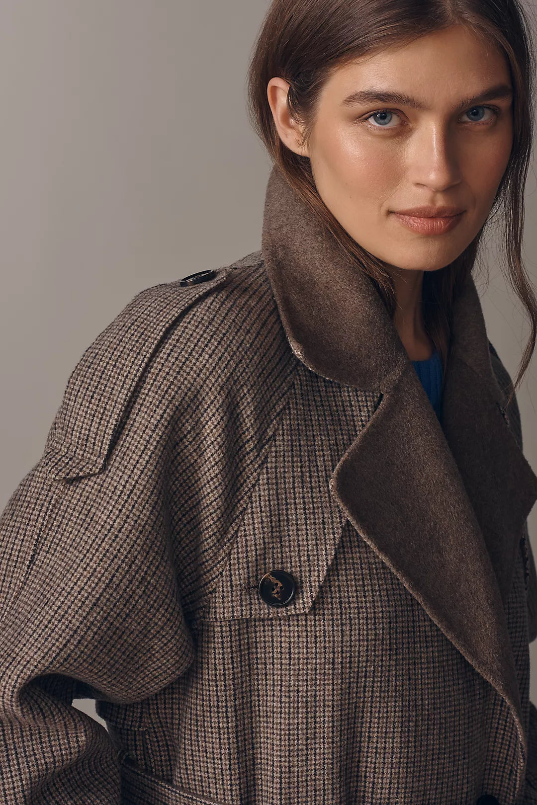 - Double-breasted button front