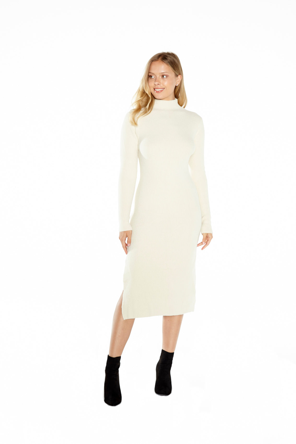 - Mock neck long sleeve midi dress