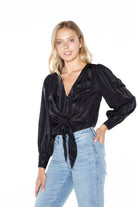 - Full button closure with tie