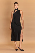 Made with a buttery satin, the Bonnie One Shoulder Scarf Dress features a sleek one-shoulder design with contrast piping detail and an attached scarf for an effortless look.