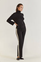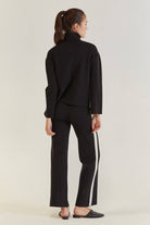 Our best-selling Noa Lounge Set is back in new color for this holiday season. This two-piece sweater knit set features a long sleeve turtleneck top and matching pants. Both the top and bottoms feature a contrast side panel detail.