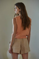 Knit Sweater Sleeveless Buttoned Open Back Vest Top
