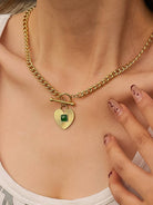 18K Gold Non-Tarnish Green Heart Chain Necklace