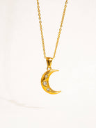 Atlas 18K Gold Non-Tarnish Half Moon CZ Necklace