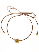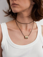 Chant 18K Gold Black Leather With Stripe Pendant Choker