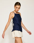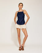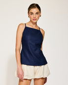 Navy blue is Spring's it color! The Eline top is feminine and fun.