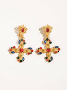 18K Matte Gold-Plated Vintage Cross Earring with Stone Embellishment