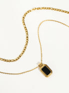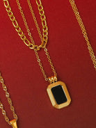 18K Gold-Plated Stacked Necklace with Rectangular Pendant