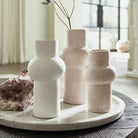 Our organic and artfully shaped paper mache vases are hand-crafted so that each piece is unique in detail and shape. · Buy together as a collection of vases for endless possibilities to display on mantels, tabletops, or ledges · Perfect for dried flowers, artificial plants or other dry decor items · Do not add water