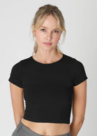 A style that's bound to become your new favorite wardrobe essential. Crafted with precision and innovation, this crop tee boasts a seamless design for a smooth, second-skin fit that hugs your curves in all the right places.