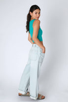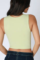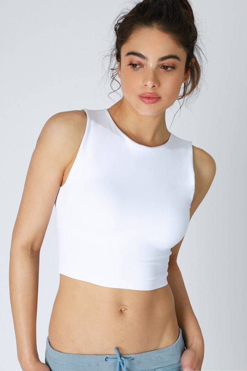 Embrace simplicity with this sleek clean line racerback crop top. Its minimalist design and streamlined silhouette make it a versatile piece that can be worn on its own or layered under your favorite jackets or cardigans for a casual, effortless look.