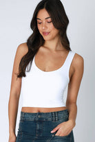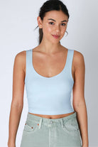 Embrace simplicity with this sleek clean line racerback crop top. Its minimalist design and streamlined silhouette make it a versatile piece that can be worn on its own or layered under your favorite jackets or cardigans for a casual, effortless look. With its clean lines and soft fabric, this crop top is perfect for a laid-back yet stylish outfit.