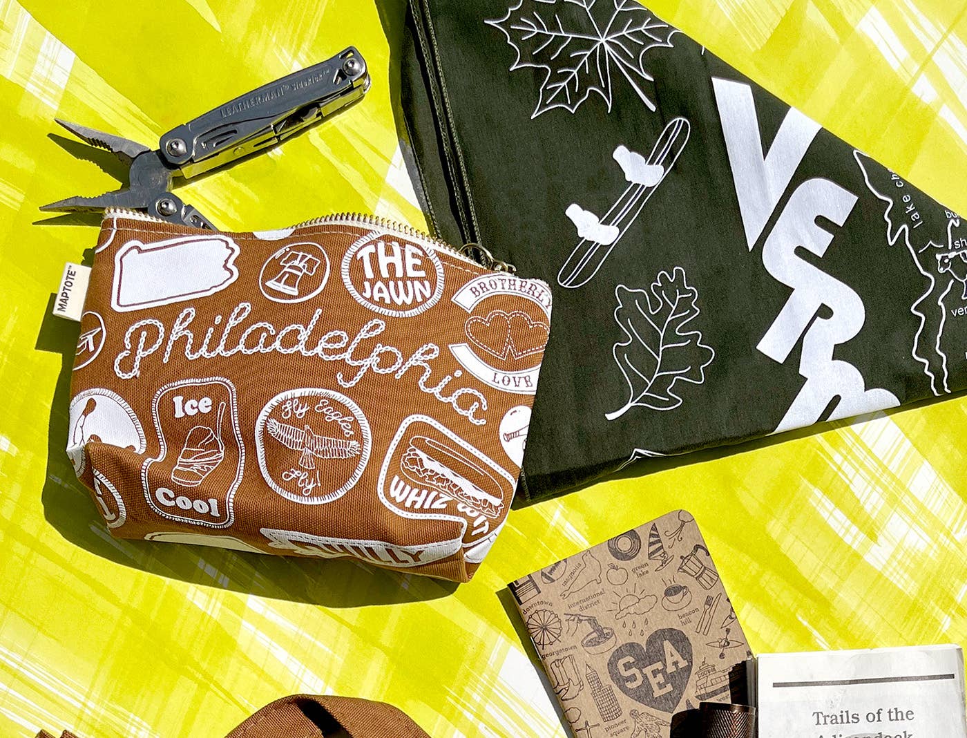 Philadelphia Pins & Patches Zipped Pouch - Caramel