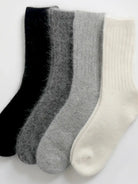Soft angora wool blend knit socks! Why wool?! Ever go to a friend's place, or just get home after a long day out and about only to be hesitant to take off your shoes? If you said yes, then you need wool, because unlike cotton, wool dries quickly. It's odor resistant, keeping your feeling fresh, even after a long day out. If you said no, you still need wool because nothing will keep those feet as warm and toasty like wool socks, except maybe a campfire, but wool is still more stylish than cotton around a campfire.