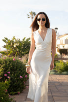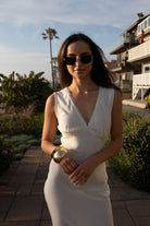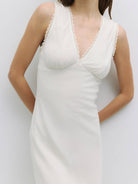 The Ellie Dress is a midi-length dress featuring a flattering contrast lace trim around the V-neckline and armholes making it easy to dress up or down for a variety of occasions!